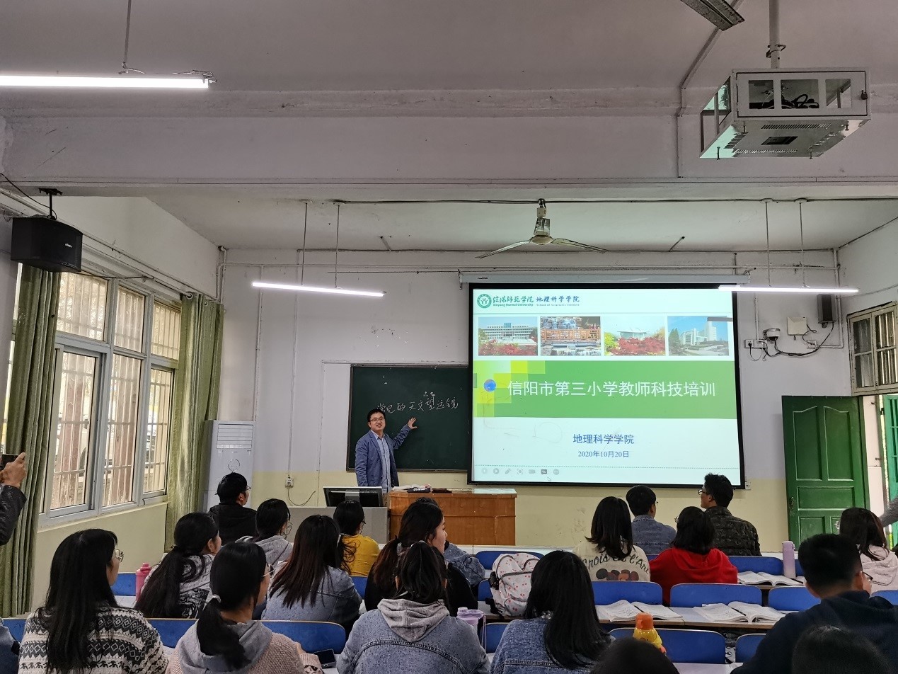 2020年9月10日,在WilliamHILL中国报告厅,张兴国副教授为信阳市第五初级中学地理教师开展科技培训活动。张兴国副教授从“何谓‘3S’技术”,“‘3S’技术的原理”,“‘3S’技术的应用”三个方面深入浅出地全面介绍了GIS(地理信息系统)技术、RS(遥感)技术、GPS(全球定位系统)技术的概念、原理、功能、应用和发展前景等,并结合自身参与的科研项目“青藏公路基础信息平台建设”、“遗址文化遗产GIS”、“信阳师范学院校园GIS”等展示了“3S”技术的具体应用和近几年的科研成果。