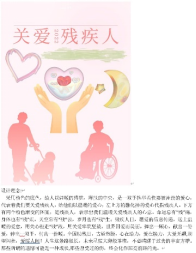 为进一步增强学生关爱他人、帮助他人、平等看待残疾人的意识,信阳师范学院地理科学科普基地VOV背包文学社于11月3日至11月8日面向全体学生举行“关爱残疾人,献出一份爱”海报制作活动。此次活动由VOV背包文学社及本校436位学生共同参加。活动主旨为“关爱残疾人”,希望通过这次活动,使得大学生们拥有一种责任感,要保护残疾人,与残疾人平等的生活,通过本次活动也让大家正确的去看待残疾人,消除歧视,让残疾人过上与我们正常人一样的生活。