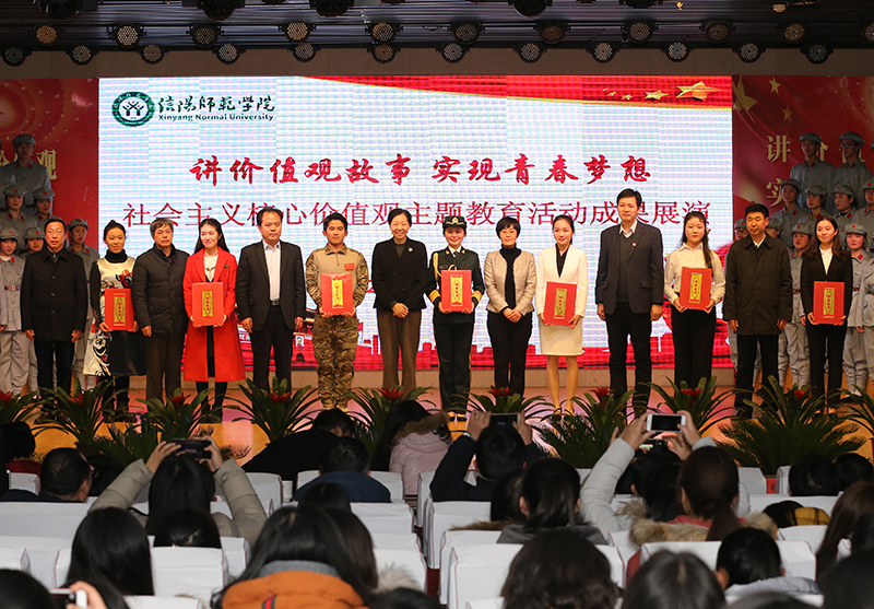 2018年1月9日,信阳师范学院讲价值观故事主题教育成果展演举行。中共河南省委宣传部、共青团河南省、中共信阳市委宣传部等部门领导观看展演。