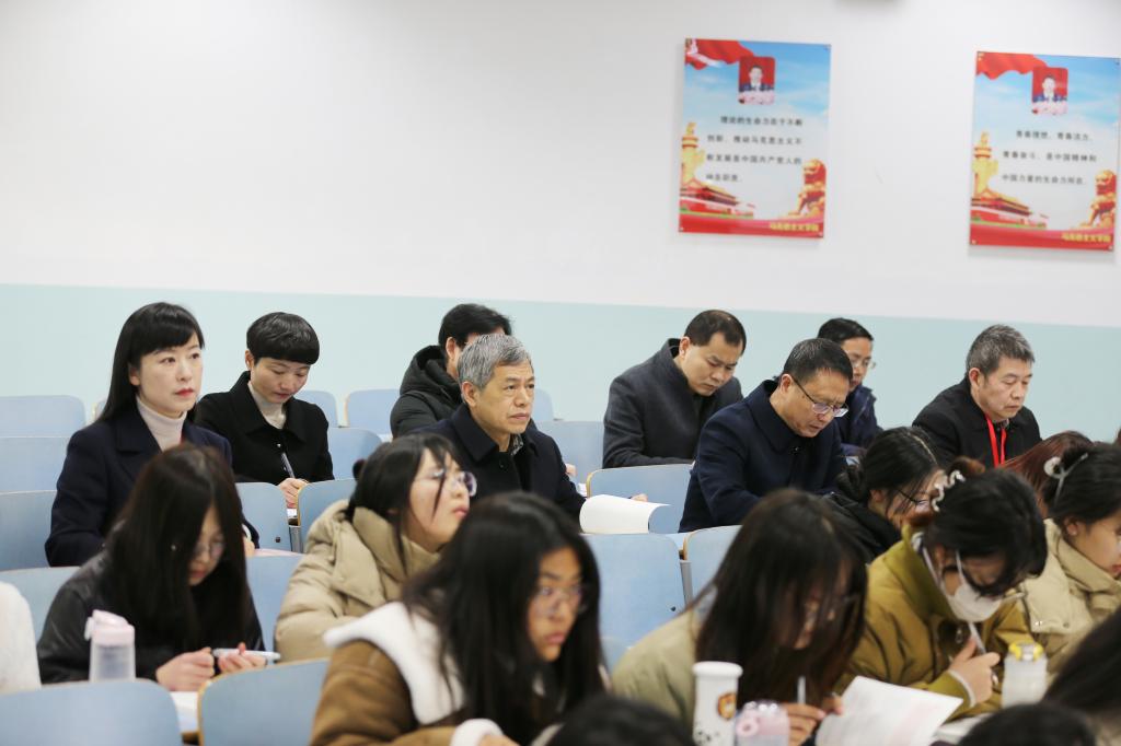 2月20日,新学期伊始,校长李俊、副校长王娟深入思政课堂,在教九楼105教室听取马克思主义学院王建礼教授的《毛泽东思想和中国特色社会主义理论体系概论》课程教学,院长办公室、教务处、马克思主义学院等单位负责同志陪同听课。