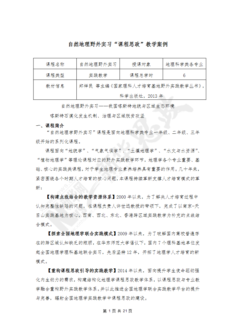 自然地理野外实习课程思政教学案例