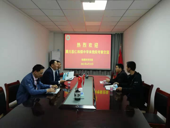 2021年4月11日,潢川县仁和镇中学校长刘良树带领学校办公室副主任向坤勇到我院考察交流,副院长牛继强及相关专业负责人参加了此次交流活动。