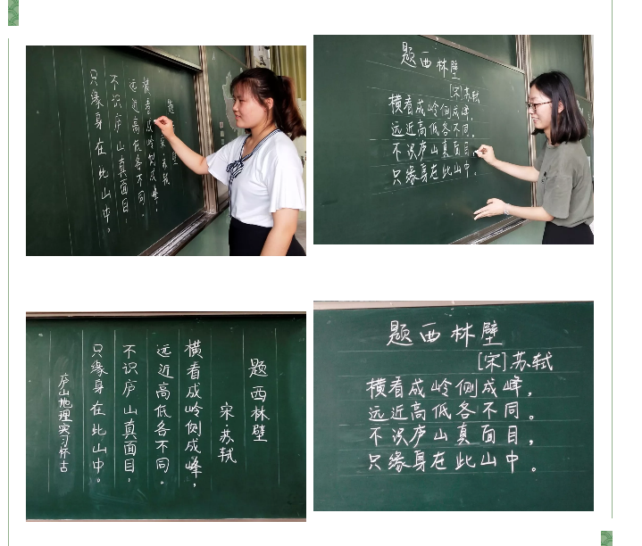 板书是教师在课堂上呈现给学生的提纲性文字,对学生理解和掌握地理知识起到提纲挈领的作用,所以板书字迹一定要工整清晰。
