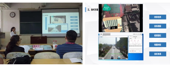 7月7日在赴河南理工大学参加大赛夏令营活动,提交了项目计划书、项目PPT电子版和纸质版。7月8日,“建行杯”2019年河南省“互联网+”大学生创新创业大赛夏令营开营仪式在河南理工大学明德楼音乐厅举行。开幕式后,进入分组路演环节。团队作品面向城市交通管理需求,采用“视频+GIS”技术,基于空间视角实现了违章停车、车辆监管、交通流量计算及预测、移动端实时感知、三维综合展示等功能,向专家展示了平台的实现方案、创新之处、财务分析、应用前景、商业模式及营销策略等,受到与会专家好评。