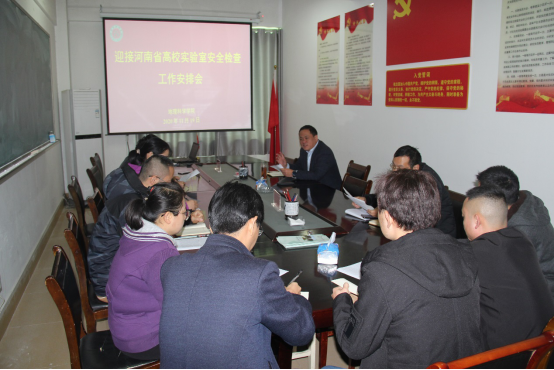 牛院长首先传达了省教育厅《关于做好2020年度高等学校实验室安全检查工作的通知》及学校《关于迎接河南省高校实验室安全检查做好实验室自查整改工作通知》文件精神;通报了学院近期学院实验室安全检查情况。并对本次迎接省高校实验安全检查及自查整改工作做了详细安排。