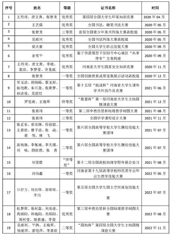 2020-2022年省级以上学生获奖