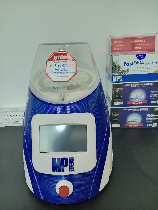 仪器名称:快速核酸提取仪 型号:美国MP FastPrep-24 5G 价格:165000.00 存放位置:理科楼北1008 主要用途:与配套的FastPrep®试剂盒一起使用,可将任何来源(包括土壤、植物和动物的组织/器官、细菌、酵母、真菌、孢子、古生物标本等)的原始DNA、RNA和蛋白质进行提取和纯化。同时避免了研磨、匀浆、超声波处理等传统方法的费力、耗时、低效等诸多缺点。