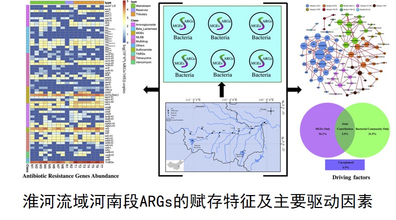 ⟡ 成果1:在抗生素抗性基因的分布规律研究方面,承担国自科项目“博落回提取物对鱼肠道抗生素抗性基因接合转移的影响及机制分析(No. 42007209)”。研究了淮河流域河南段水体环境中抗生素抗性基因的赋存特征,环境领域知名期刊《Ecotoxicology and Environmental Safety》(2020年发表,高被引,23次)、《Journal of Hazardous Materials》(2021年发表,SCI一区)上。
