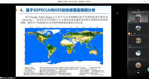刘良云教授围绕地表覆盖定量遥感的研究背景与意义、全球30米Landsat Datacube构建、全球Landsat Datacube产品算法、基于GSPECLib中国地表要素时序定量遥感、基于GSPECLib和GEE的地表覆盖精细分类等内容,对其团队近期的研究成果进行了展示。刘良云研究员指出,随着卫星遥感数据和定量遥感技术积累,对地观测进入中分辨率定量遥感时代,全球精细地表覆盖的定量遥感成为可能。目前全球中分辨率地表覆盖监测还主要依赖于目视解译和逐景的监督分类,分类体系相对简单,且只具备地物类型的定性指标,缺乏定量指标的地表要素信息。刘良云研究员提出了一种全要素、中分辨率地表覆盖定量遥感监测研究新框架,基于时间序列定量遥感数据,在获得地表覆盖精细分类结果同时,集成地表要素定量遥感反演模型,提供定量指标的地表功能要素。学术报告结束后,刘教授还与到场师生进行了精彩互动,会场讨论热烈。副院长牛继强教授对刘教授精彩的学术报告表示感谢。牛院长指出,刘教授的报告资料丰富,图表详实,直观性及概念性强,使学生对遥感的应用有了更为深刻的理解,尤其是展现了科研学者对地理信息系统研究的专业度和客观性,发散了学生的研究思维,为到场的师生上了精彩的一课,希望大家能够积极将地理信息系统学习与实践结合,努力成长为高素质复合型科技人才。