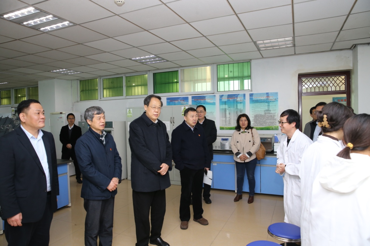 张震宇详细听取了重点实验室建设进展及存在问题的工作汇报,考察了污染监测预警研究室、水土污染模拟研究室、污染物检测研究室、水土污染修复研究室、废弃物资源化研究室、污染处理设备研究室,同开展科学研究的师生进行了亲切交谈,详细了解了仪器设备使用、人才培养、社会服务等方面的情况。