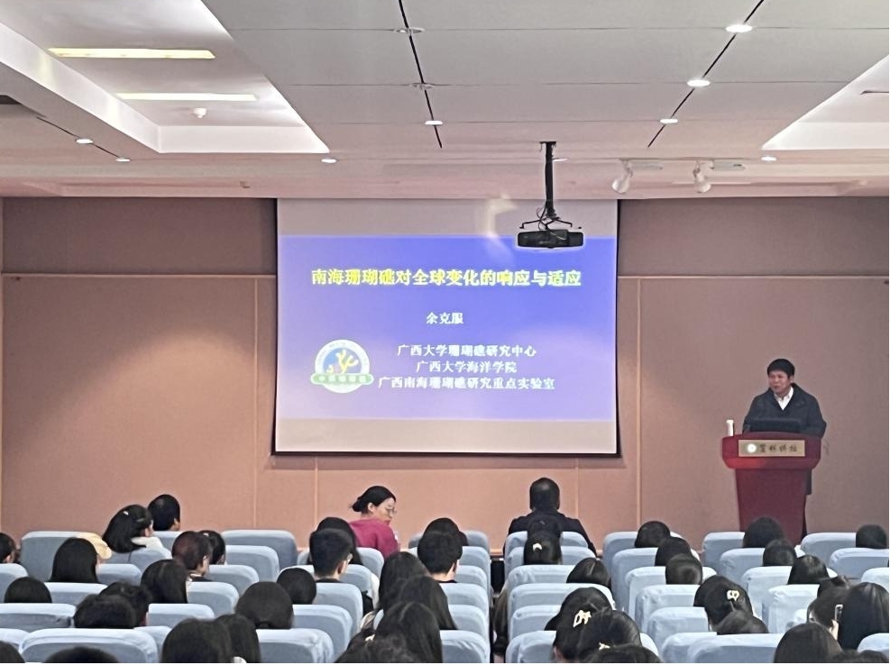 1020日,应WilliamHILL中国邀请,广西大学余克服教授在贤林讲坛为我校师生作题为南海珊瑚礁对全球气候变化的响应与适应的学术报告。我校青年教师、硕士研究生和本科生共200余人参加报告。报告会由WilliamHILL中国院长牛继强教授主持。